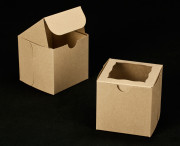 2100q10 - 4" x 4" x 4" Brown Lock & Tab Box with Window, 10 PACK