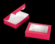 2442 - 10" x 7" x 2 1/2" Pink/White Lock & Tab Box with Window