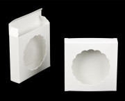 3123 - 4 3/8" x 4 3/8" x 1" White Reverse Tuck Box with Round Window