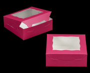 3272q10 - 7" x 7" x 2 1/2" Pink/White Lock & Tab Box with Window, 10 PACK