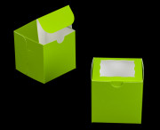 3300q10 - 4" x 4" x 4" Lime Green/White Lock & Tab Box with Window, 10 PACK