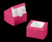 3388q10 - 4" x 4" x 2 1/2" Pink/White Lock & Tab Box with Window, 10 PACK