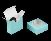 3494q10 - 2 1/4" x 2 1/4" x 1" Diamond Blue/White Favor Box with Window, 10 PACK