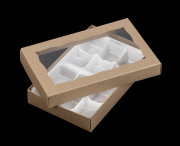 3517q10x3525q10x4198q10 - 7" x 4 3/8" x 1 1/4" Brown Simplex Box with Window, and 12-Cavity Tray Set, 10 PACK