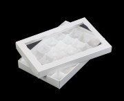 3519q10x3515q10x4199q10 - 9 1/2" x 6" x 1 1/4" White Simplex Box with Window, and 24-Cavity Tray Set, 10 PACK