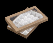 3529x3514x4199 - 9 1/2" x 6" x 1 1/4" Brown Simplex Box with Window, and 24-Cavity Tray Set
