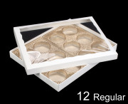 3537q10x3520q10x3857q10x3857q10 - 12 1/2" x 9 3/4" x 1 1/4" White Simplex Box Set with Poly Window, and 12-Cavity Tray Set, 10 PACK