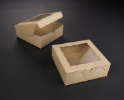 4492q10 - 8" x 8" x 3" Brown Lock & Tab Box with Window, 10 PACK