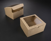 4495q10 - 9" x 9" x 5" Brown Lock & Tab Box with Window, 10 PACK