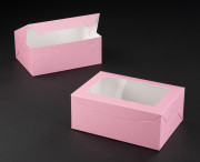 4593q10 - 10" x 7" x 4" Hush Touch Light Pink/White Lock & Tab Box with Window, 10 PACK