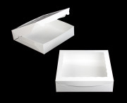 1727q10 - 12" x 12" x 3" White Lock & Tab Box with Window, 10 PACK