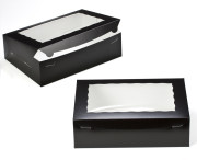 2873q10 - 14" x 10" x 4" Black/White Lock & Tab Box with Window, 10 PACK