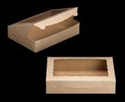 3393q10 - 11 1/2" x 8 1/4" x 2 1/2" Brown Lock & Tab Box with Window, 10 PACK