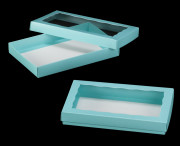 3530q10x3536q10 - 9 1/2" x 6" x 1 1/4" Diamond Blue/White Simplex Box Set, with Window, 10 PACK