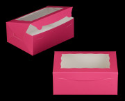 3597 - 10" x 7" x 4" Pink/White Lock & Tab Box with Window