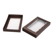 3674q10 - 7" x 4 3/8" x 1 1/4" Chocolate/Brown Simplex Box Lid Only, with Window, 10 PACK