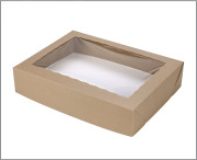 3710 - 19" x 14" x 4" Brown Lock & Tab Paperboard Lid Only, with Window