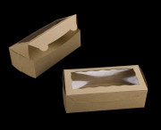 3721 - 8" x 4" x 2 1/2" Brown Lock & Tab Box with Window
