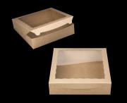 3994 - 12" x 12" x 3" Brown Lock & Tab Box with Window