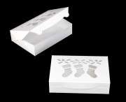 4041 - 10" x 7" x 2 1/2" White Stockings Window Lock & Tab Holiday Box