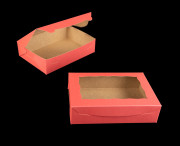 4302 - 10" x 7" x 2 1/2" Red/Brown Lock & Tab Box with Window