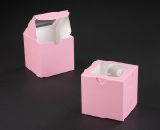 4584q10 - 4" x 4" x 4" Hush Touch Light Pink/White Lock & Tab Box with Window, 10 PACK